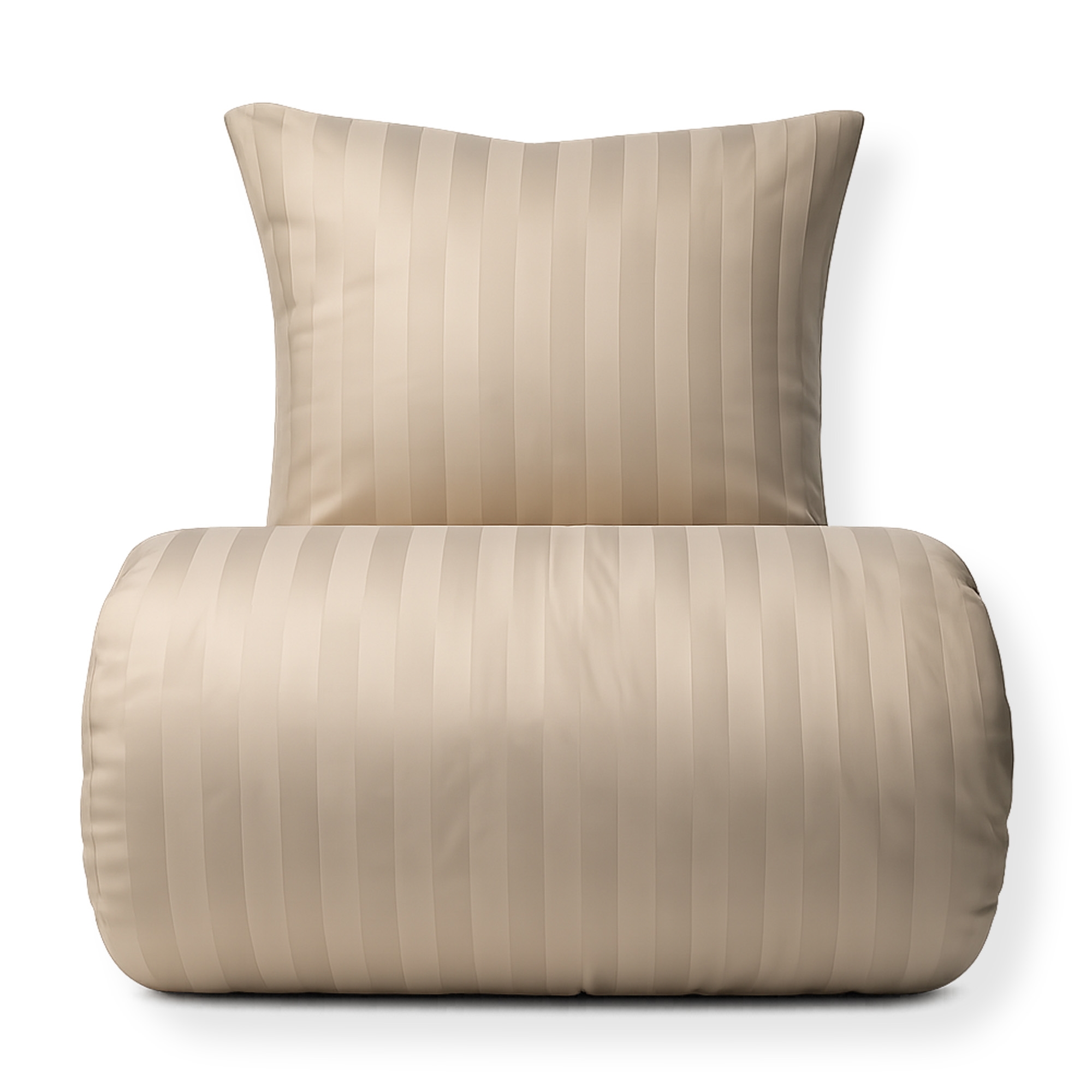 Bambus sengetøj med satinvævede striber – silkeblød komfort i 100% naturlig bambusForkæl dig selv med eksklusivt bambus sengetøj fra Nordstrand Home. Det sandfarvet sengesæt med elegante jacquardvævede striber kombinerer et stilrent design med en silkeblød overflade og en komfort, der minder om silke – men til en mere tilgængelig pris.