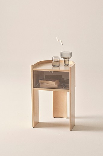 Sengebord som er meget velforarbejdet og gedigent, fremstillet af plywood, MDF og massivt fyrretræ med blød, hvidpigmenteret overflade med lakfinish. Sengebordet har halvrund form med lille kant rundt om bordpladen og tre flotte og stabile ben. Skuffen er i klart akrylglas og den har et lille hul foroven, så du nemt kan trække den ud. Skuffen har en lille, diskret stopper i bagkanten, så du ikke trækker den for langt ud i farten og indholdet lander på gulvet. DEXX er et sengebord ud over det sædvanlige, med en gedigen stil og fine detaljer. Materiale: Fyrretræ, plywood, MDF og akrylglas. Størrelse: Højde 65 cm, bredde 40 cm, dybde 40 cm. Kantens højde: 3 cm. Skuffe: højde 17 cm, bredde 37,5 cm, dybde 20 cm. Maks. vægt skuffe: 8 kg. Rengøring: Aftørres med en let fugtet klud. Brug gerne rengøringsmiddel med alkohol til skuffen. Tip/råd: DEXX egner sig også som bord i entreen, og er praktiske med en skuffe til småting som nøgler og tegnebog.