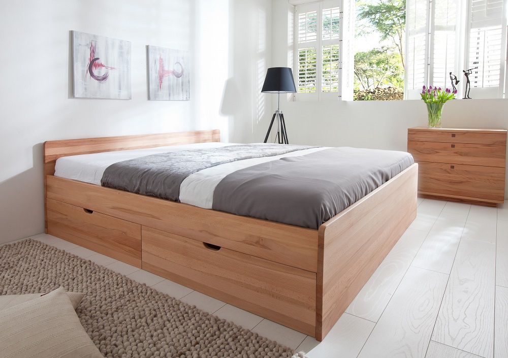 HMS – Messina Skuffe Seng i Kernebøg-180×200 – Inkl. 2 stk. sengebord