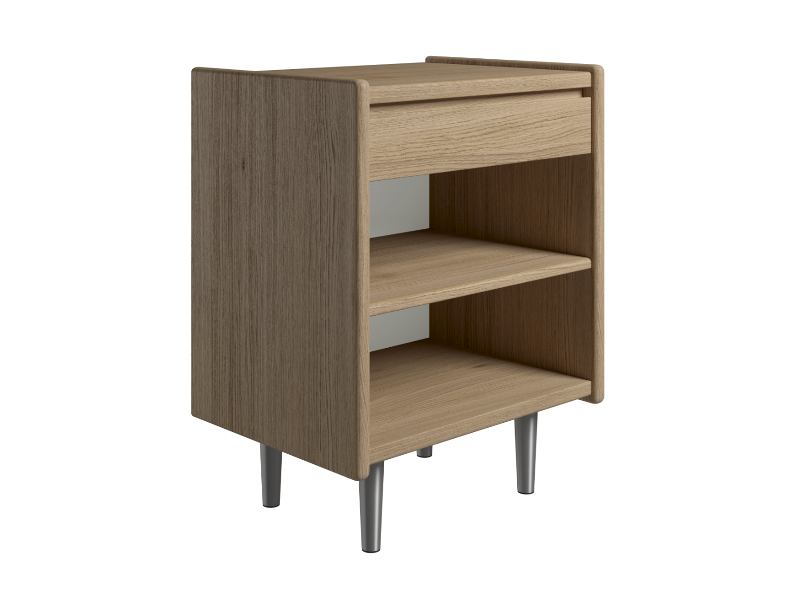 Korpus og skuffe: 22 mm spånplade-fineret, massive kantlister. Lak: UV-lak/maling på flader og vandlak/maling på kanter. 1 skuffe med metal udtræk og 2 hylder Højde 51 cm (Den angivne højde er ekskl. understel)Kan også bruges til væg ophæng. Bredde 50 ell