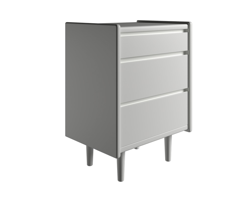 Korpus og skuffe: 22 mm spånplade-fineret, massive kantlister. Lak: UV-lak/maling på flader og vandlak/maling på kanter. 1 lav skuffe og 2 høje skuffer med metal udtræk, Højde 51 cm (Den angivne højde er ekskl. understel)Kan også bruges til væg ophæng. Br