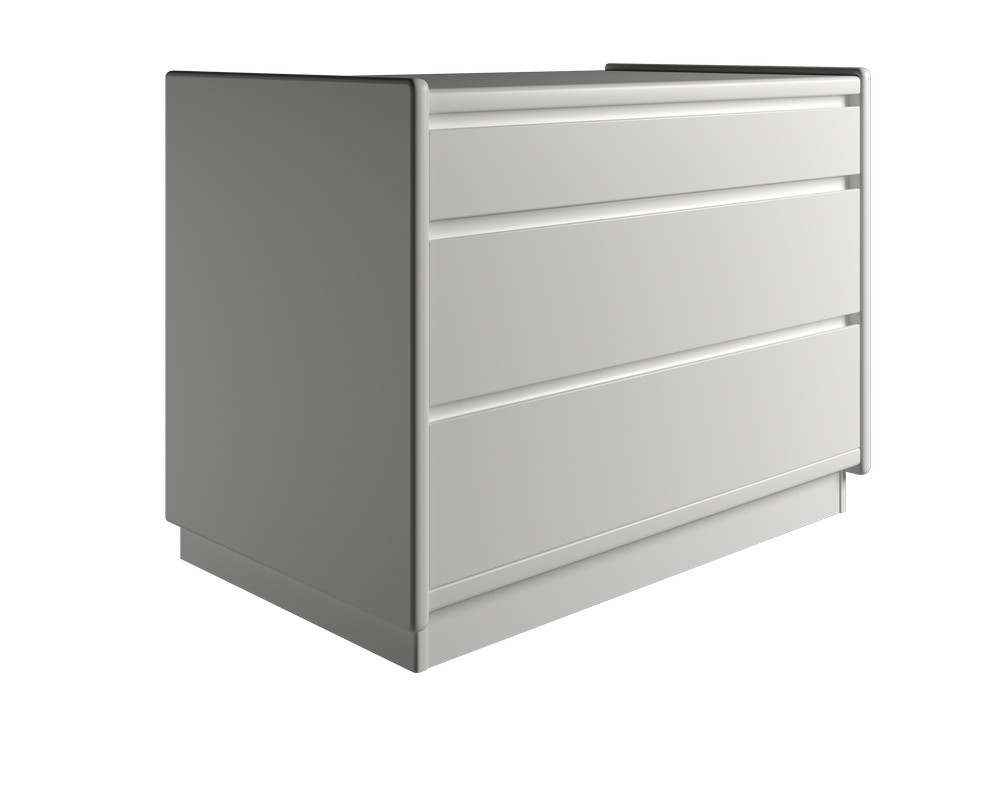 Korpus og skuffe: 22 mm spånplade-fineret, massive kantlister. Lak: UV-lak/maling på flader og vandlak/maling på kanter. 1 lav skuffe og 2 høje skuffer med metal udtræk, Højde 51 cm (Den angivne højde er ekskl. understel)Kan også bruges til væg ophæng. Br
