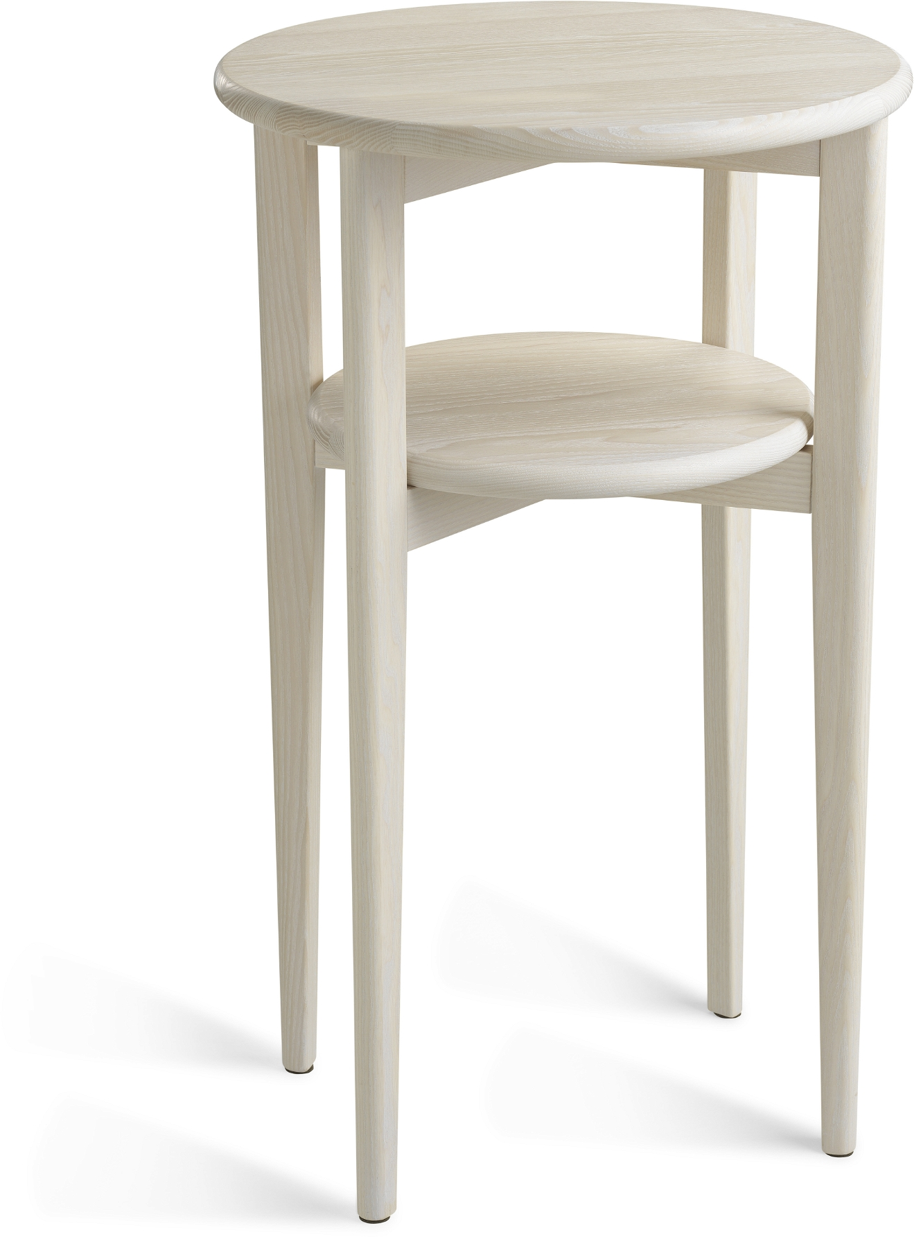 Sengebord natbord Oscarssons Möbel Mira massiv hvidolieret ask Ø39 x H65 cm med hylde