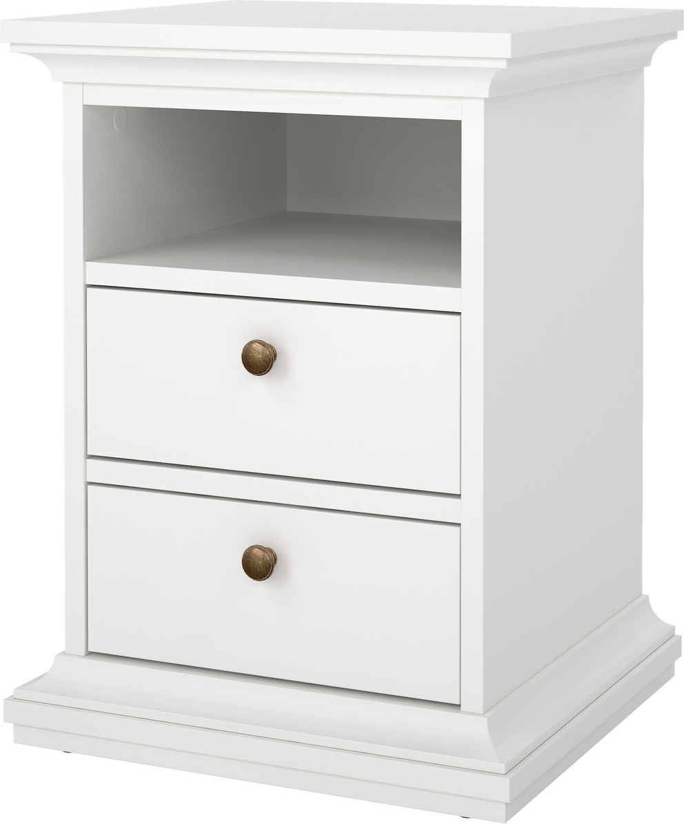 Sengebord Vesterholm Nora – hvid, 2 skuffer, FSC-spånplade, H58,8 x B43,6 x D40 cm