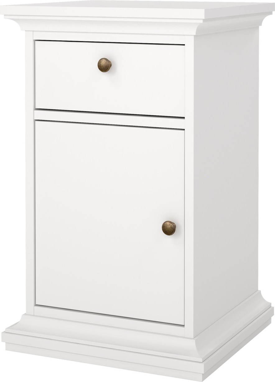 Sengebord Vesterholm Nora – hvid natbord, 1 skuffe og låge, FSC, spånplade, H70ÃB44ÃD40 cm