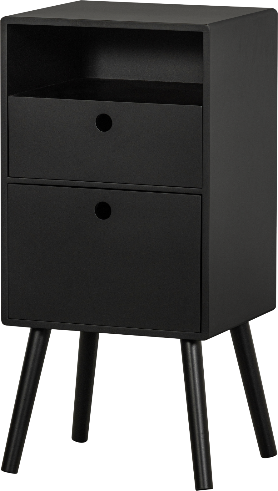 Sengebord WOOOD Collection Ozzy sort H75xB36xD30 cm med 2 skuffer og åbent rum