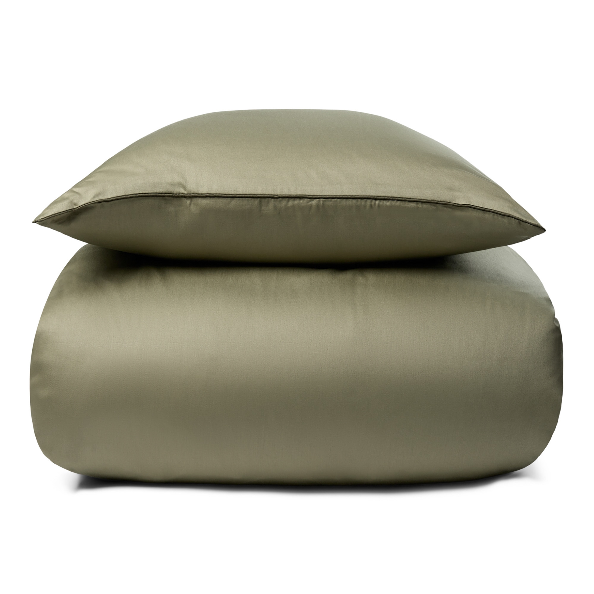 Sengetøj 140×200 cm – 100% bomuldssatin – Grøn med mørkegrøn pipingkant