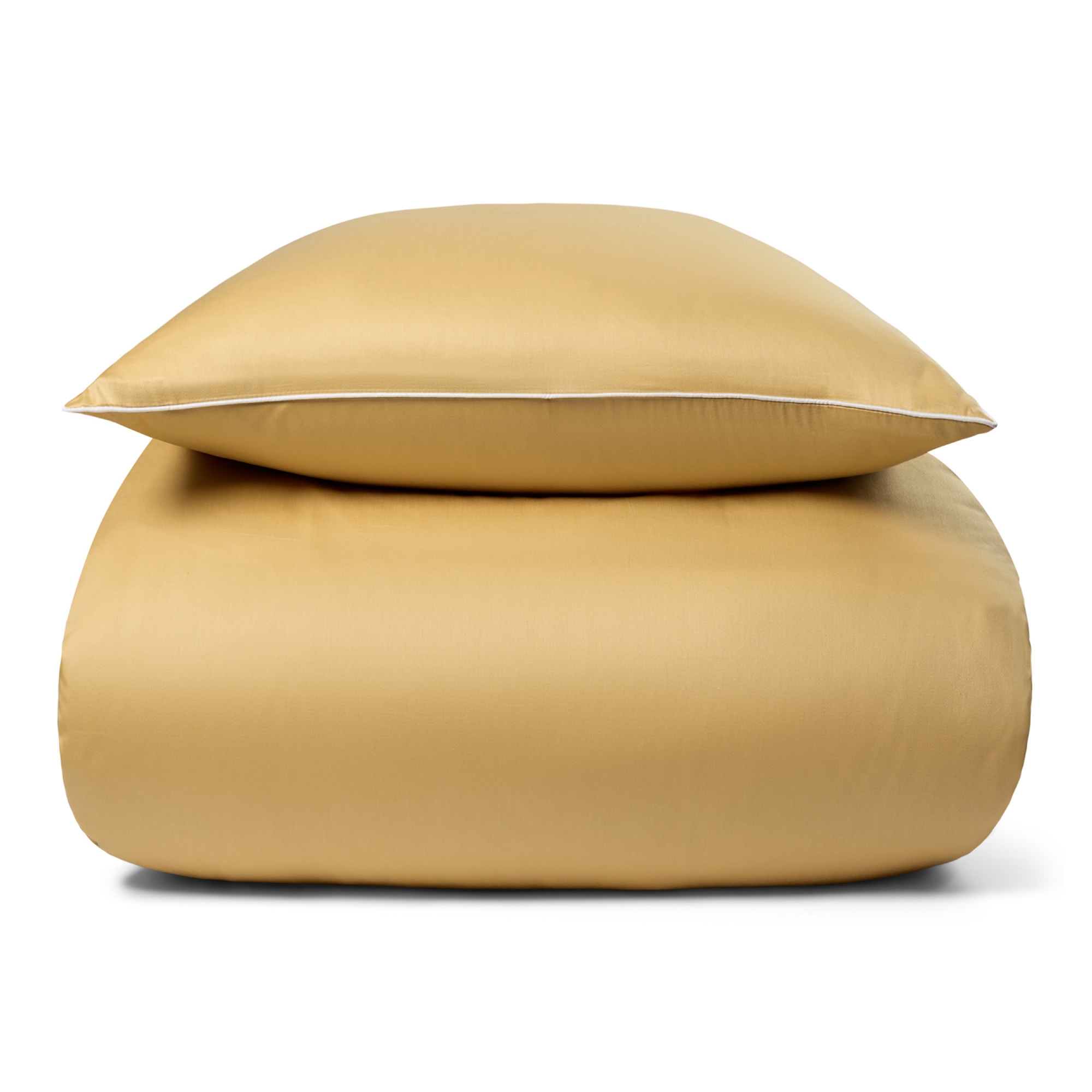 Sengetøj 140×200 cm – 100% bomuldssatin – Gul med hvid pipingkant